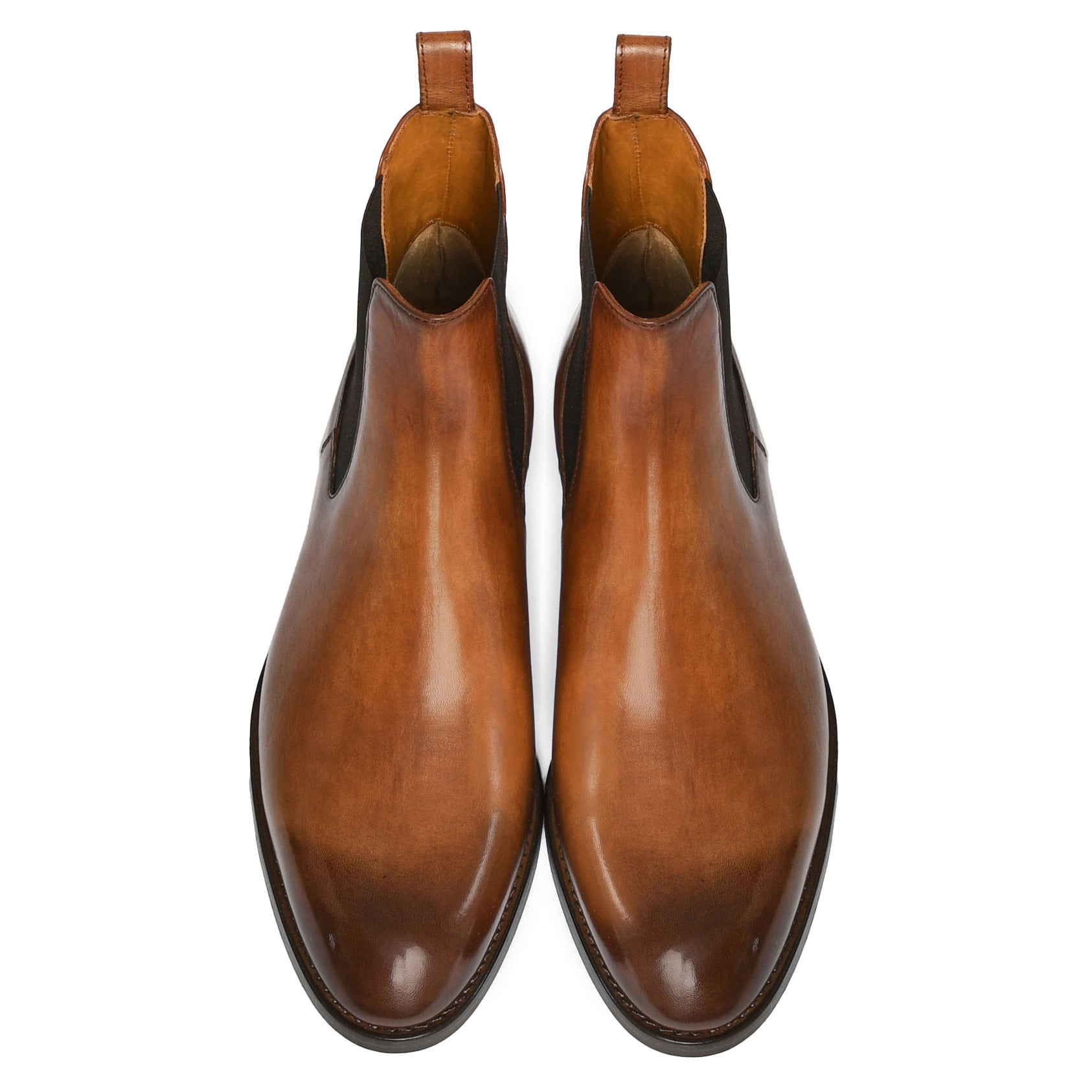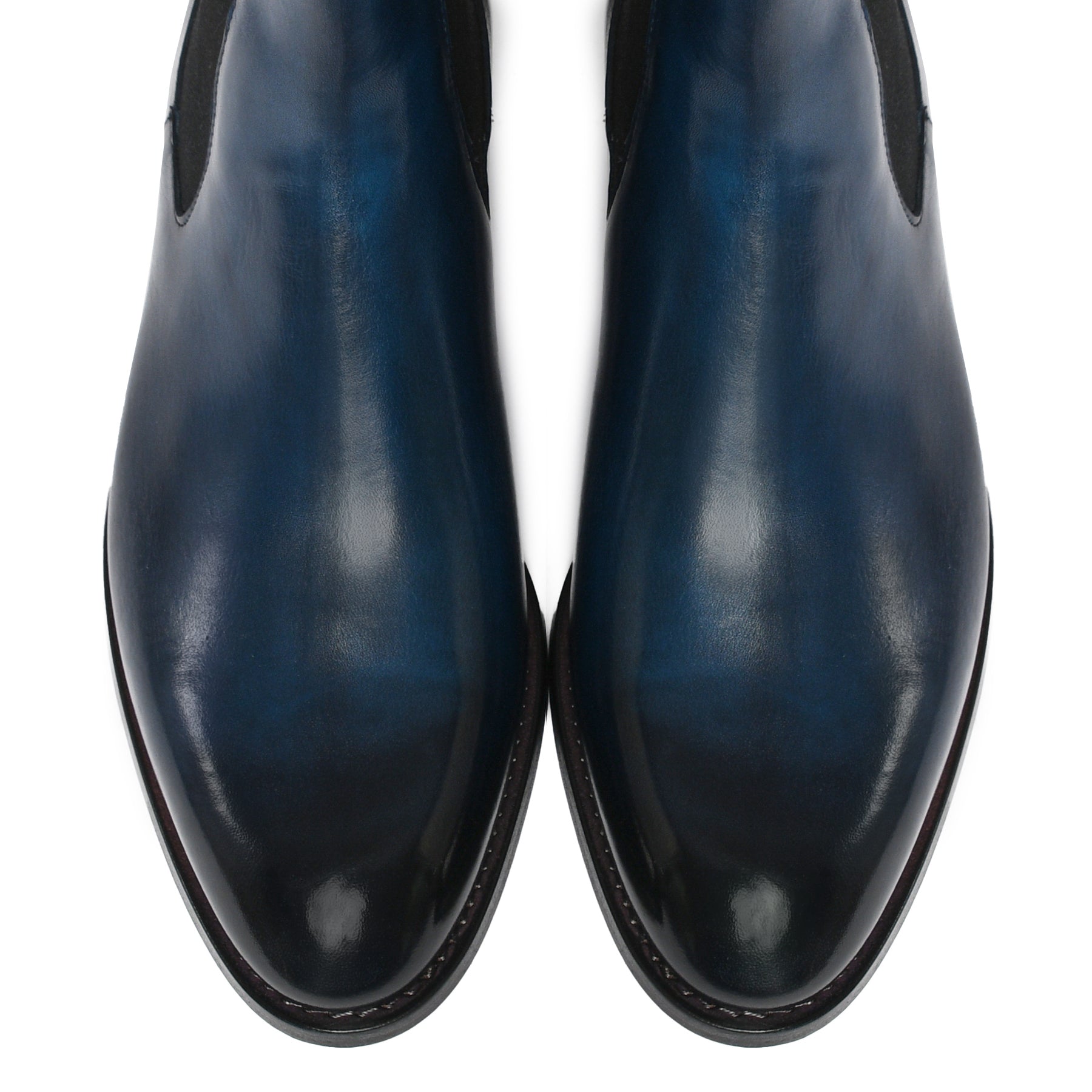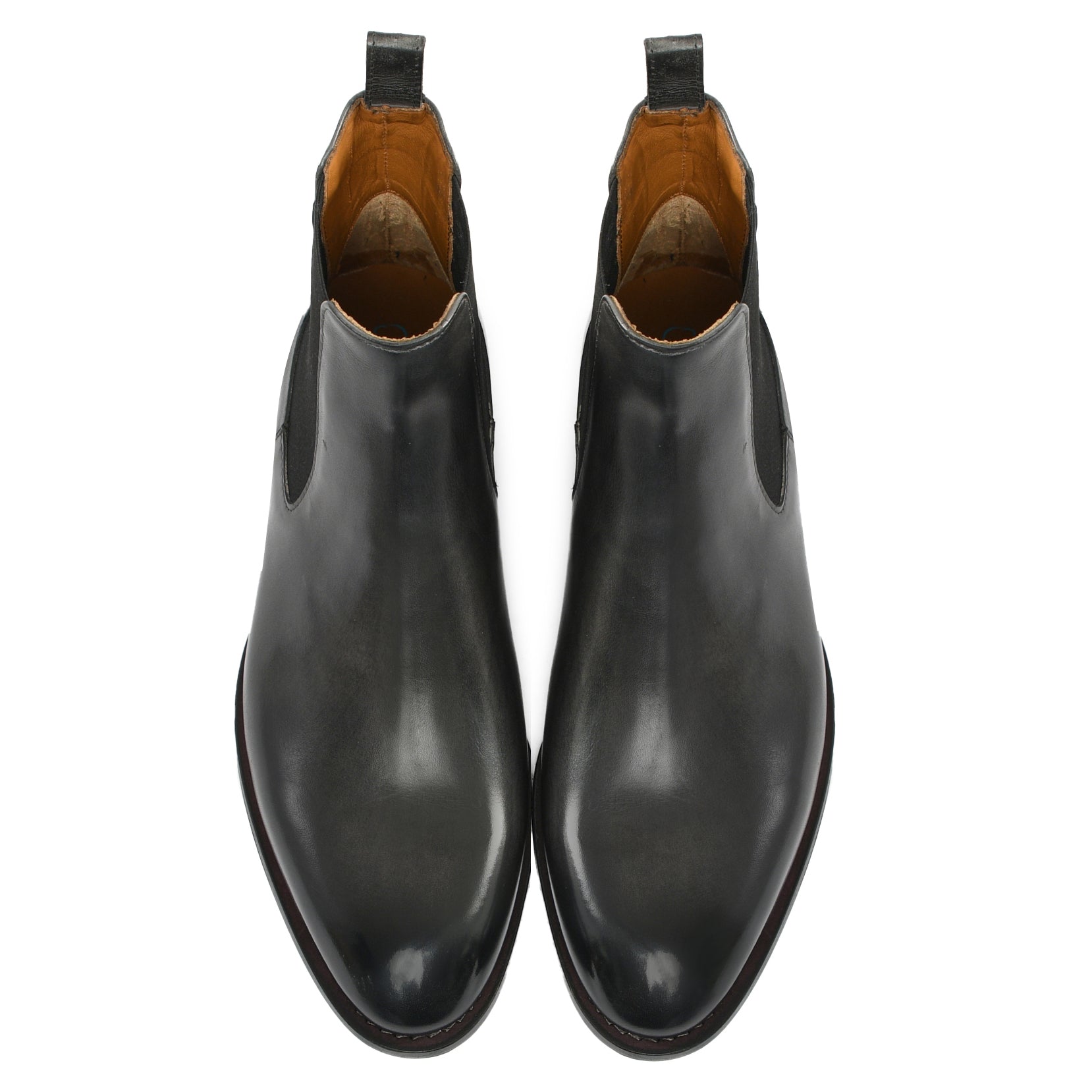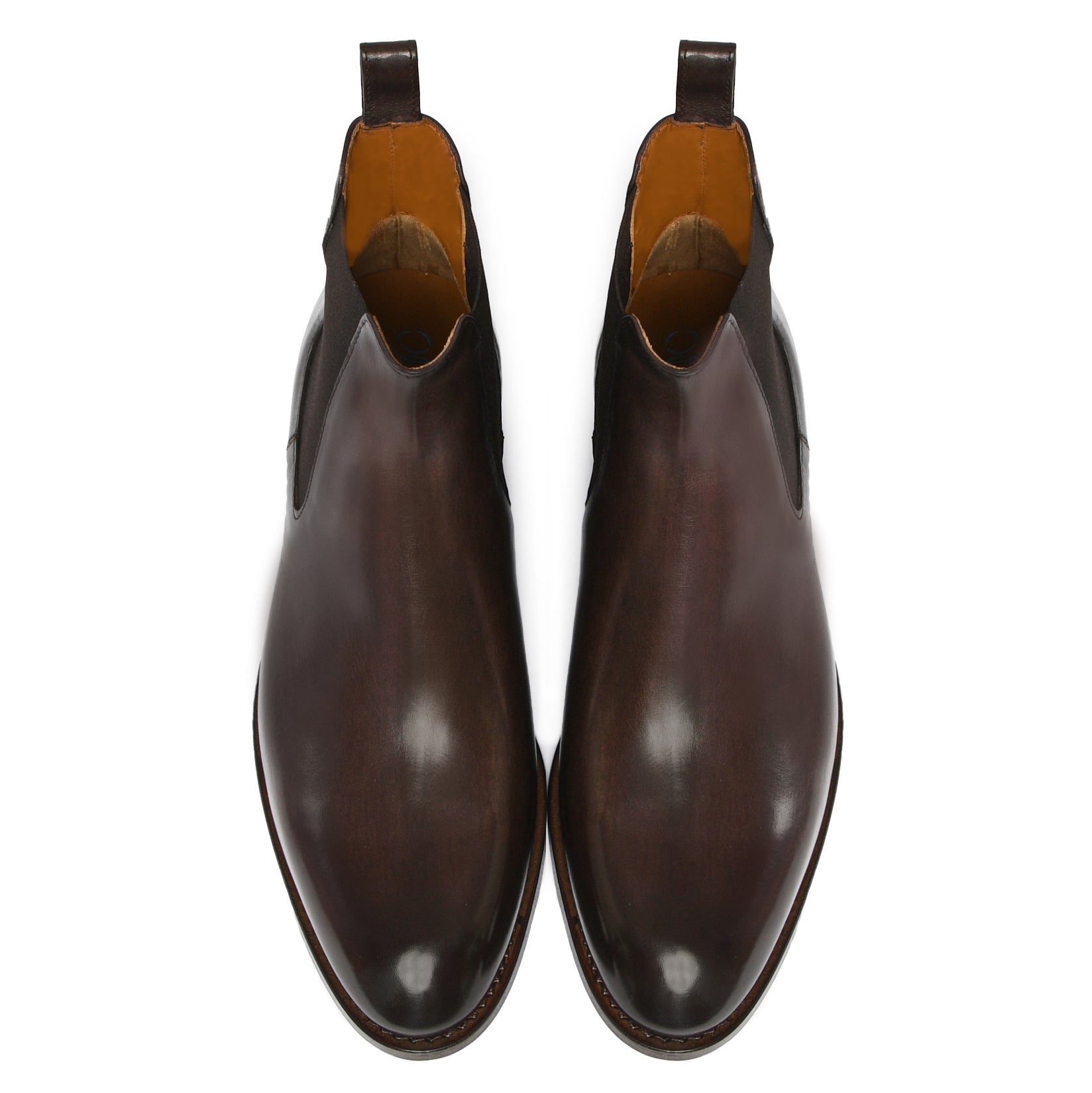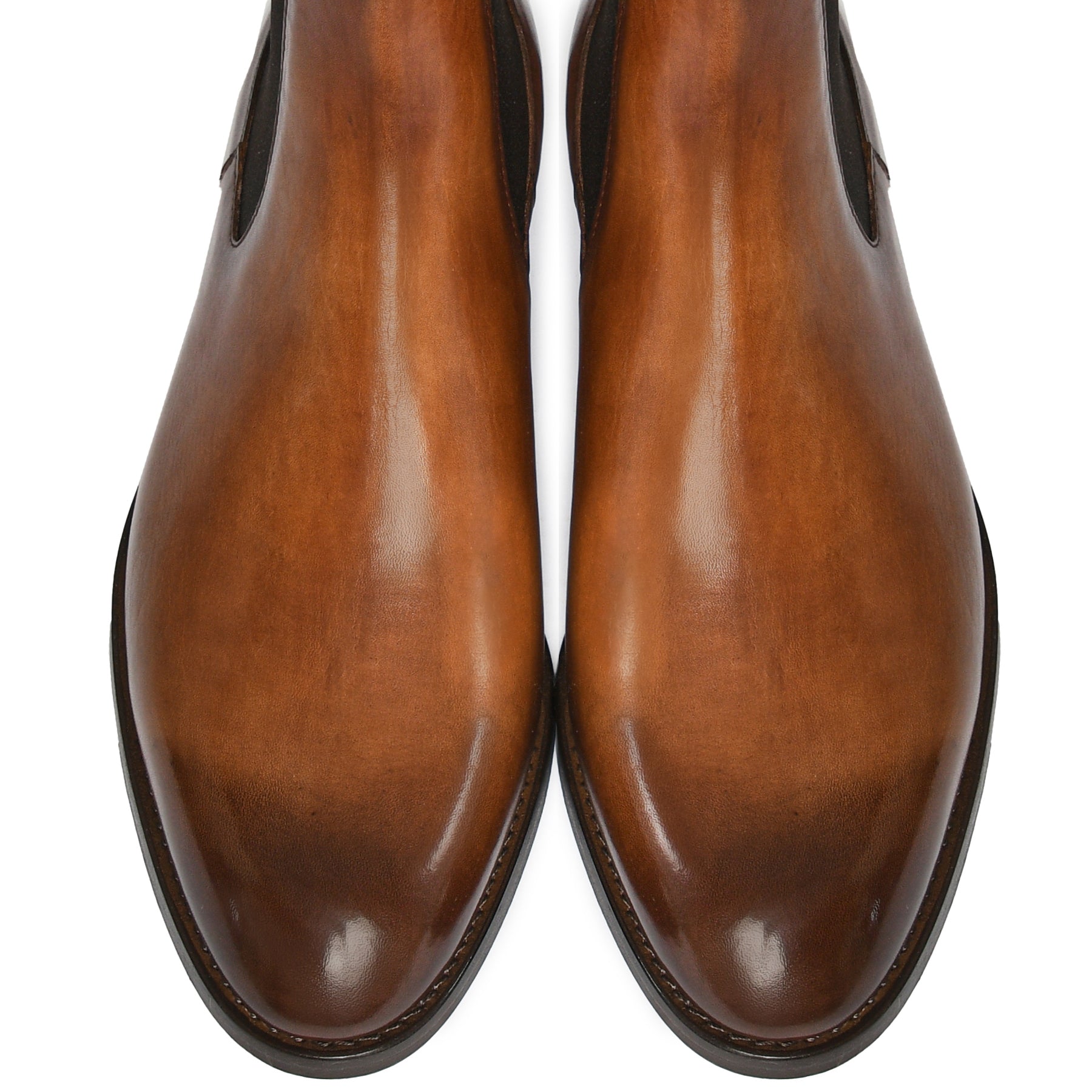 Il risultato finale di un processo meticoloso: una scarpa raffinata, dalla patina sfumata realizzata a mano, simbolo di qualità, tradizione e stile senza tempo.