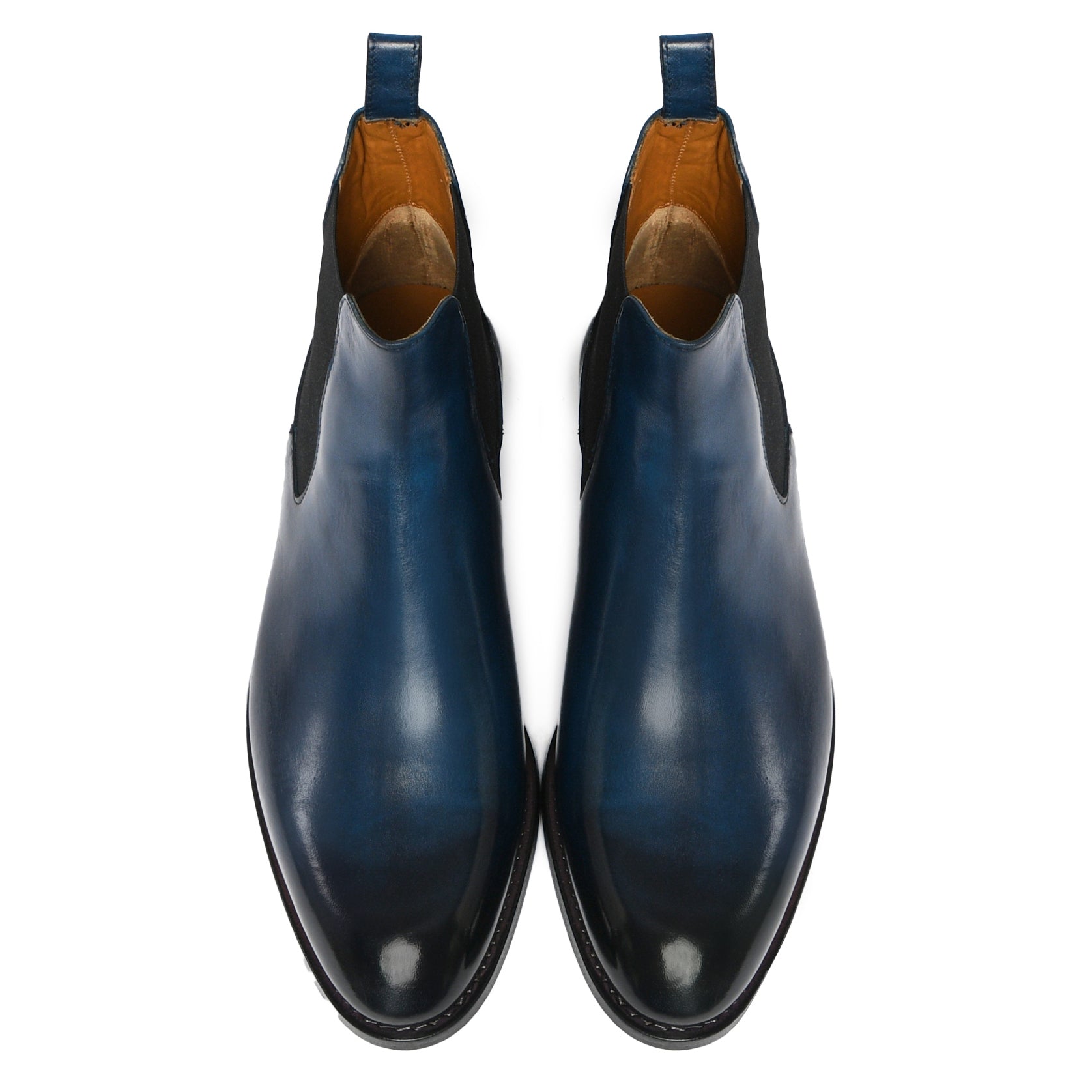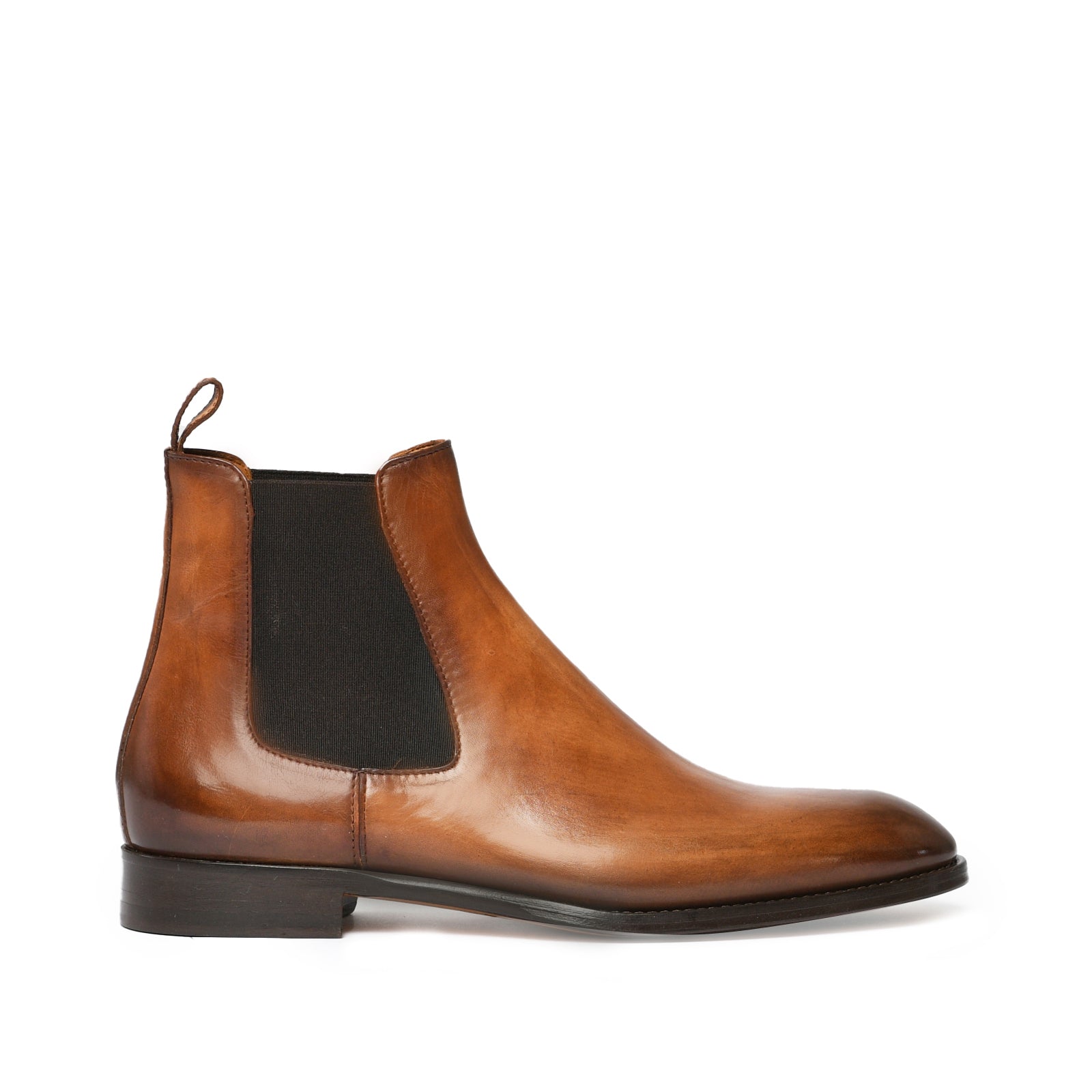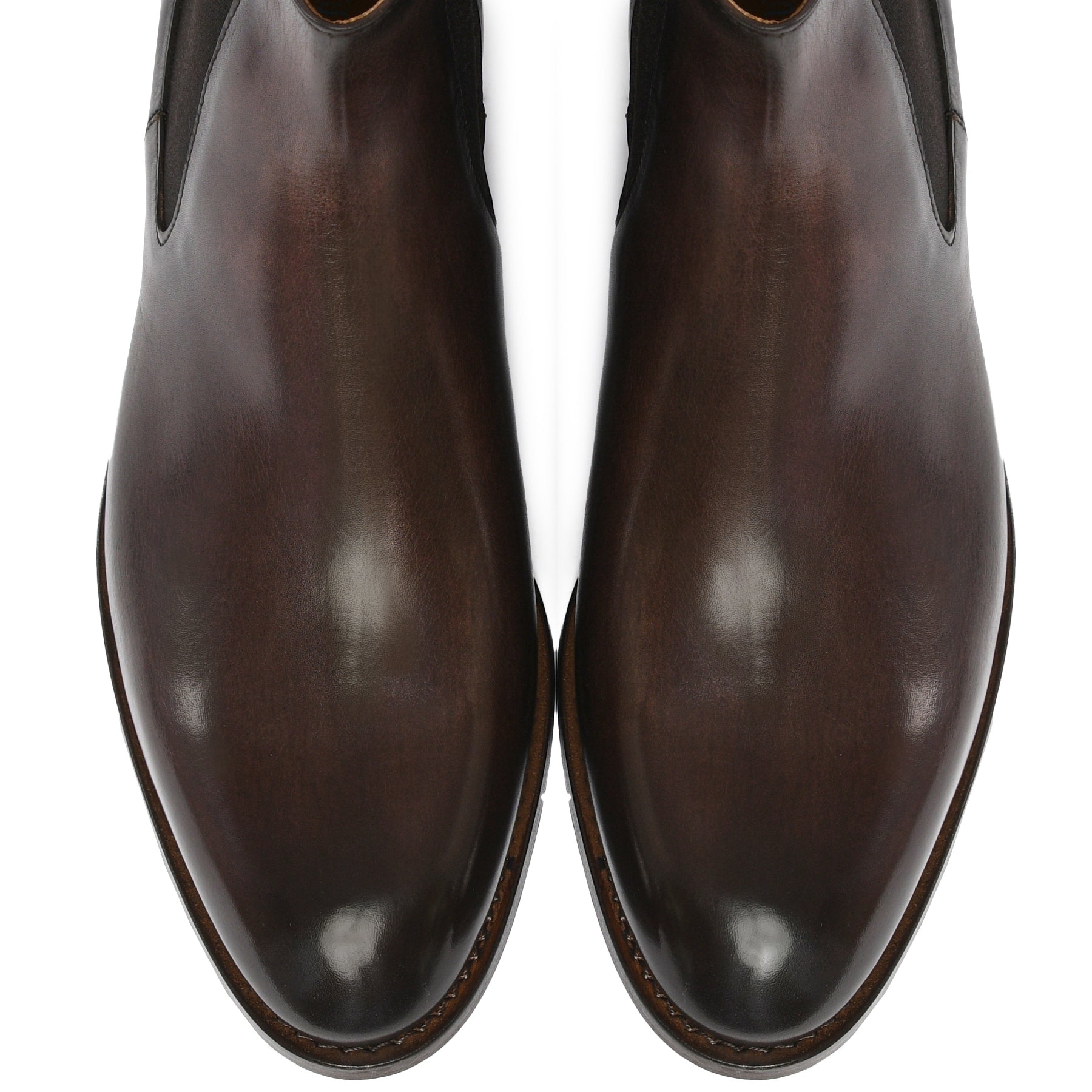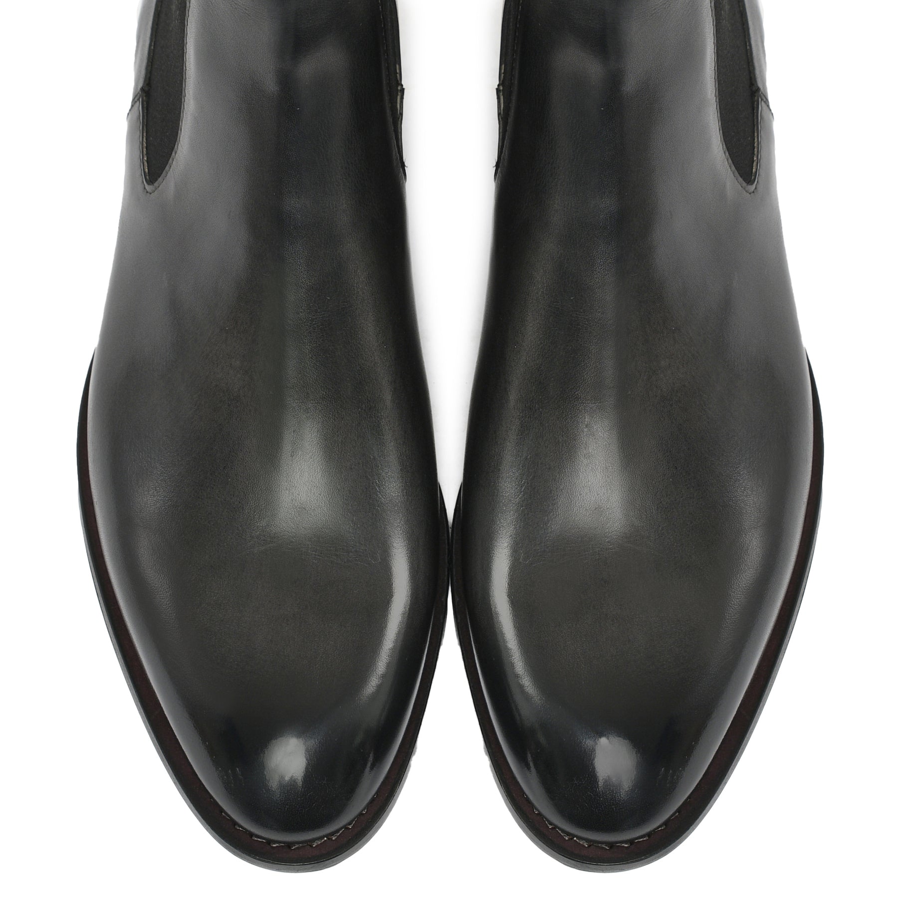 Il risultato finale di un processo meticoloso: una scarpa raffinata, dalla patina sfumata realizzata a mano, simbolo di qualità, tradizione e stile senza tempo.