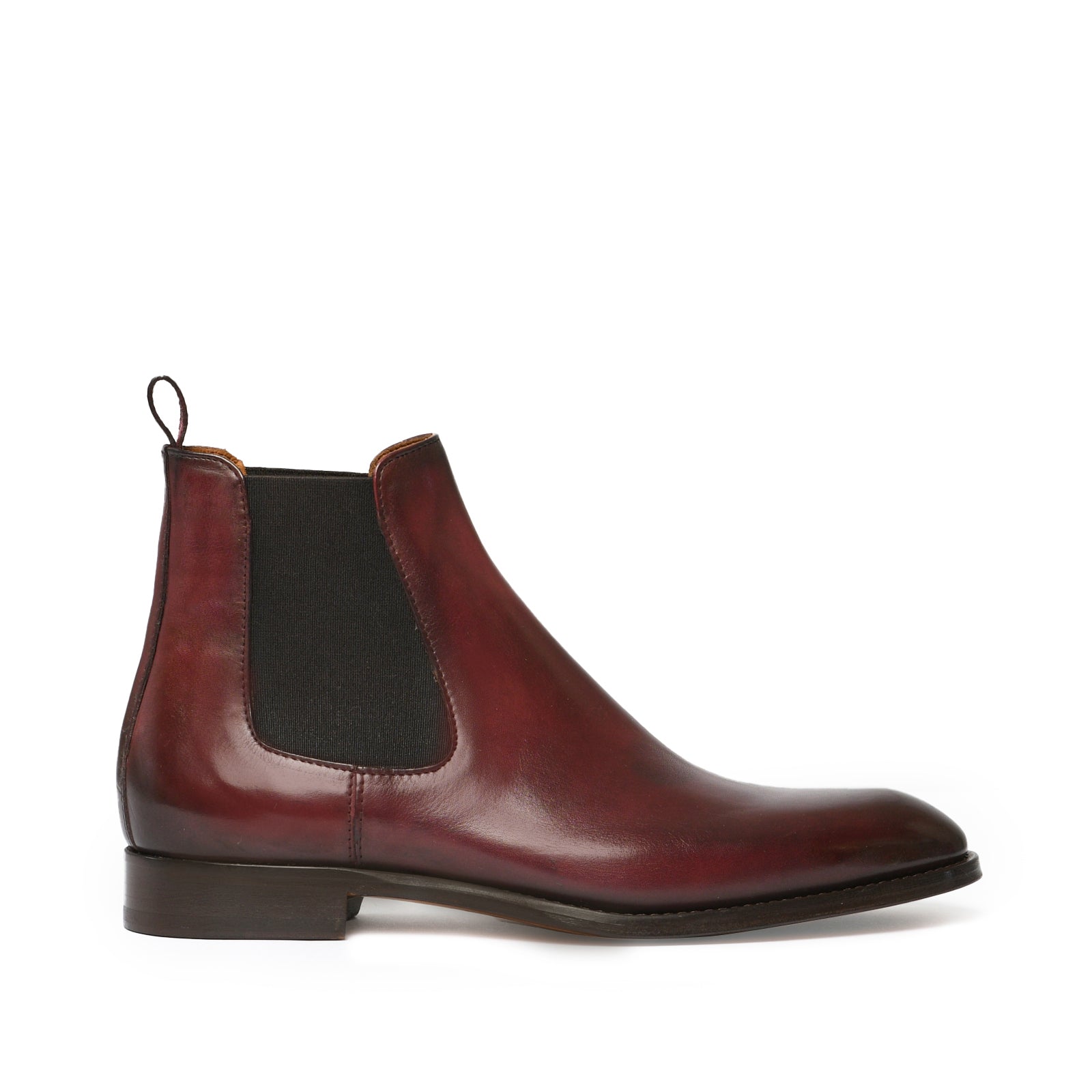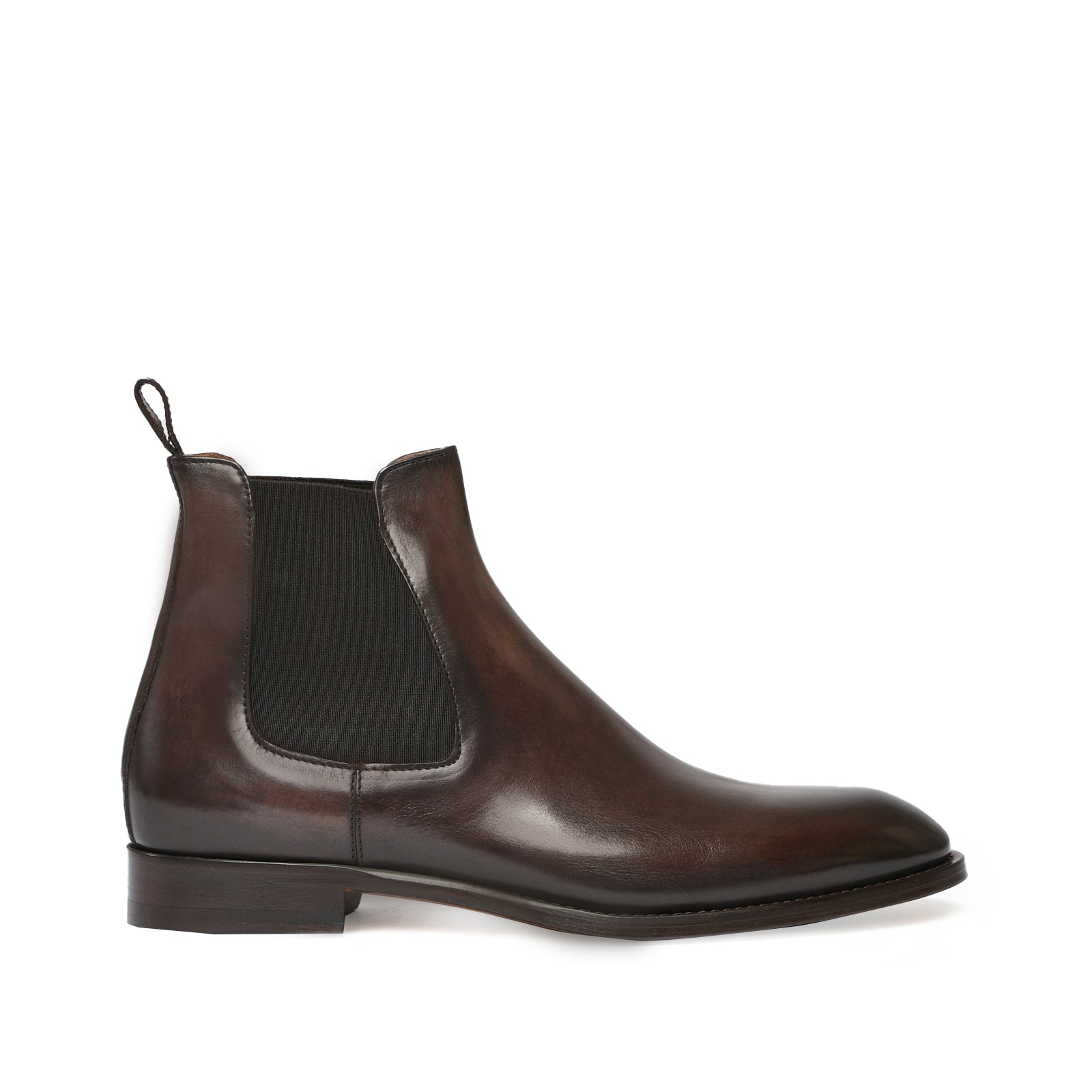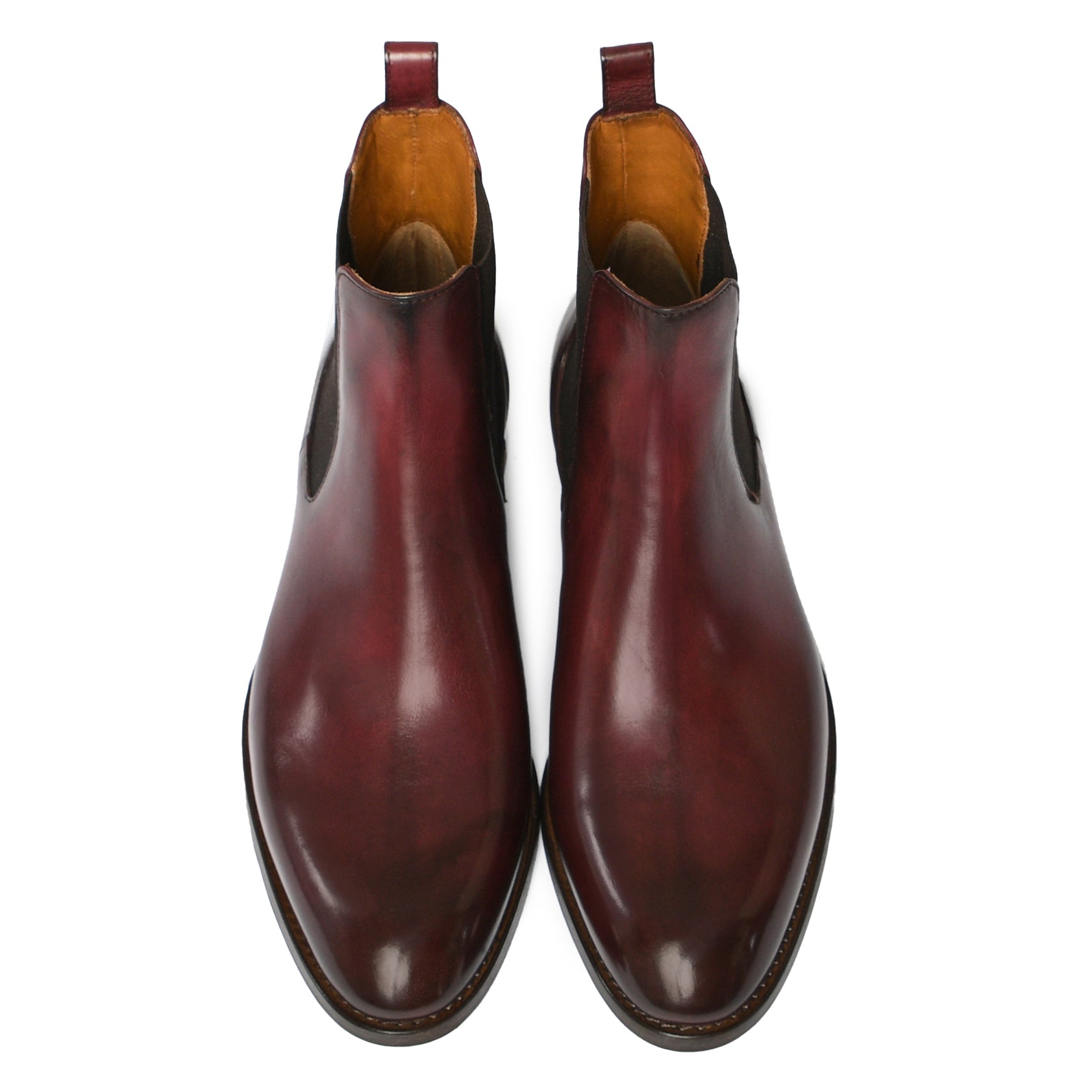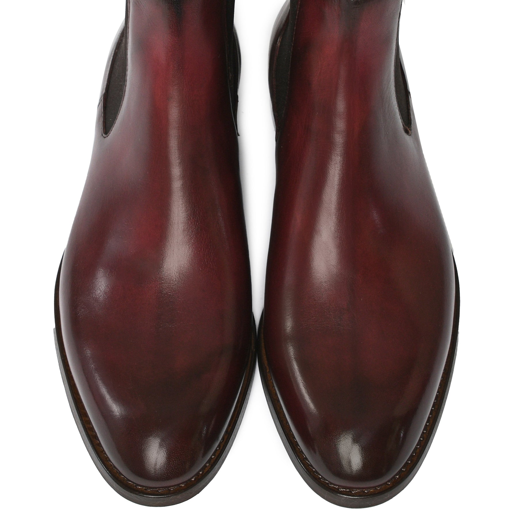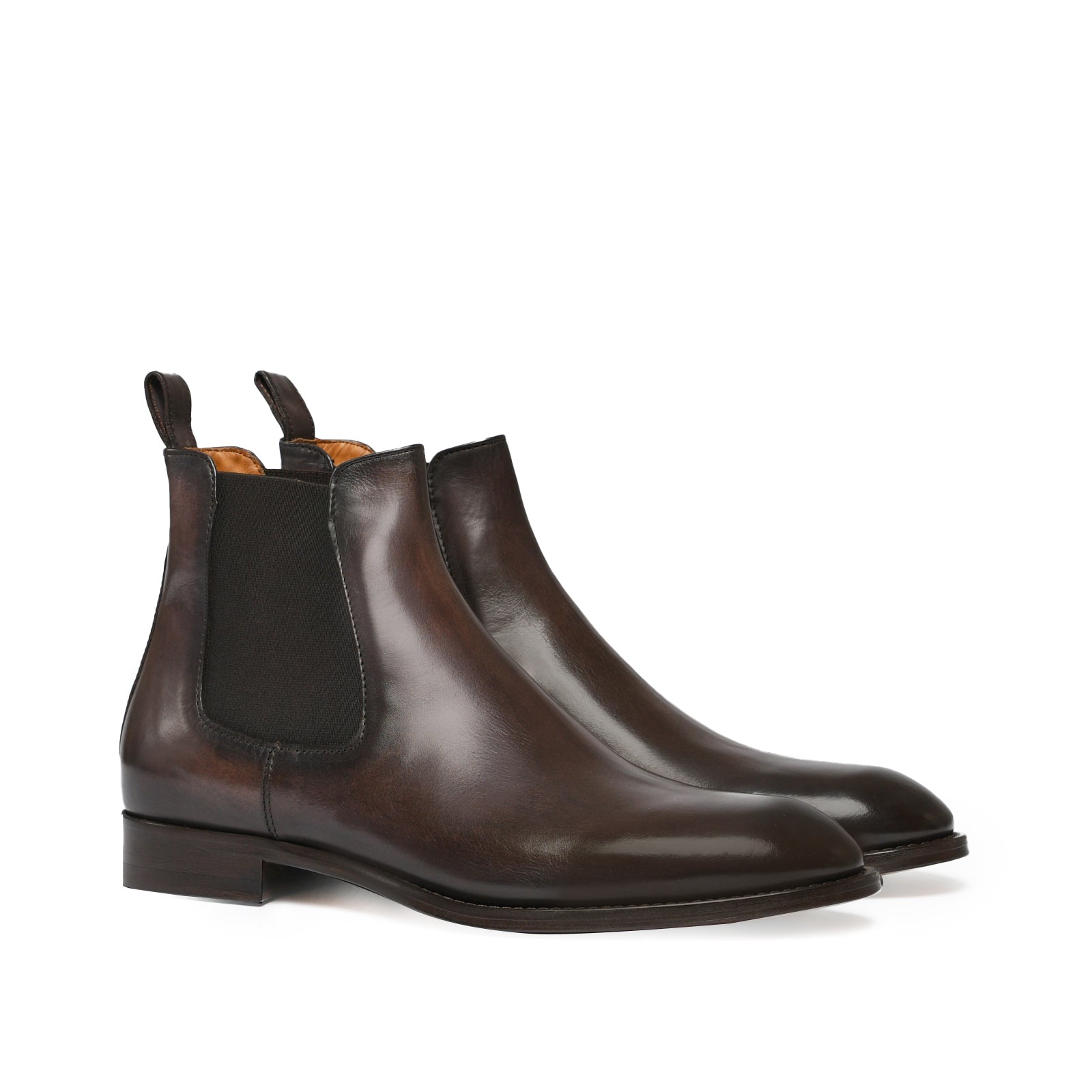Il risultato finale di un processo meticoloso: una scarpa raffinata, dalla patina sfumata realizzata a mano, simbolo di qualità, tradizione e stile senza tempo.