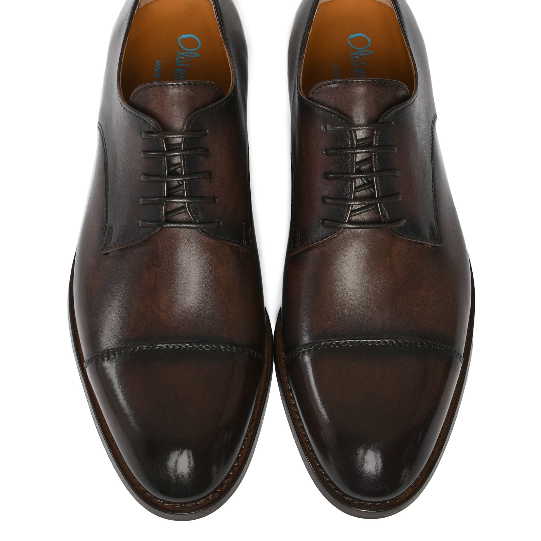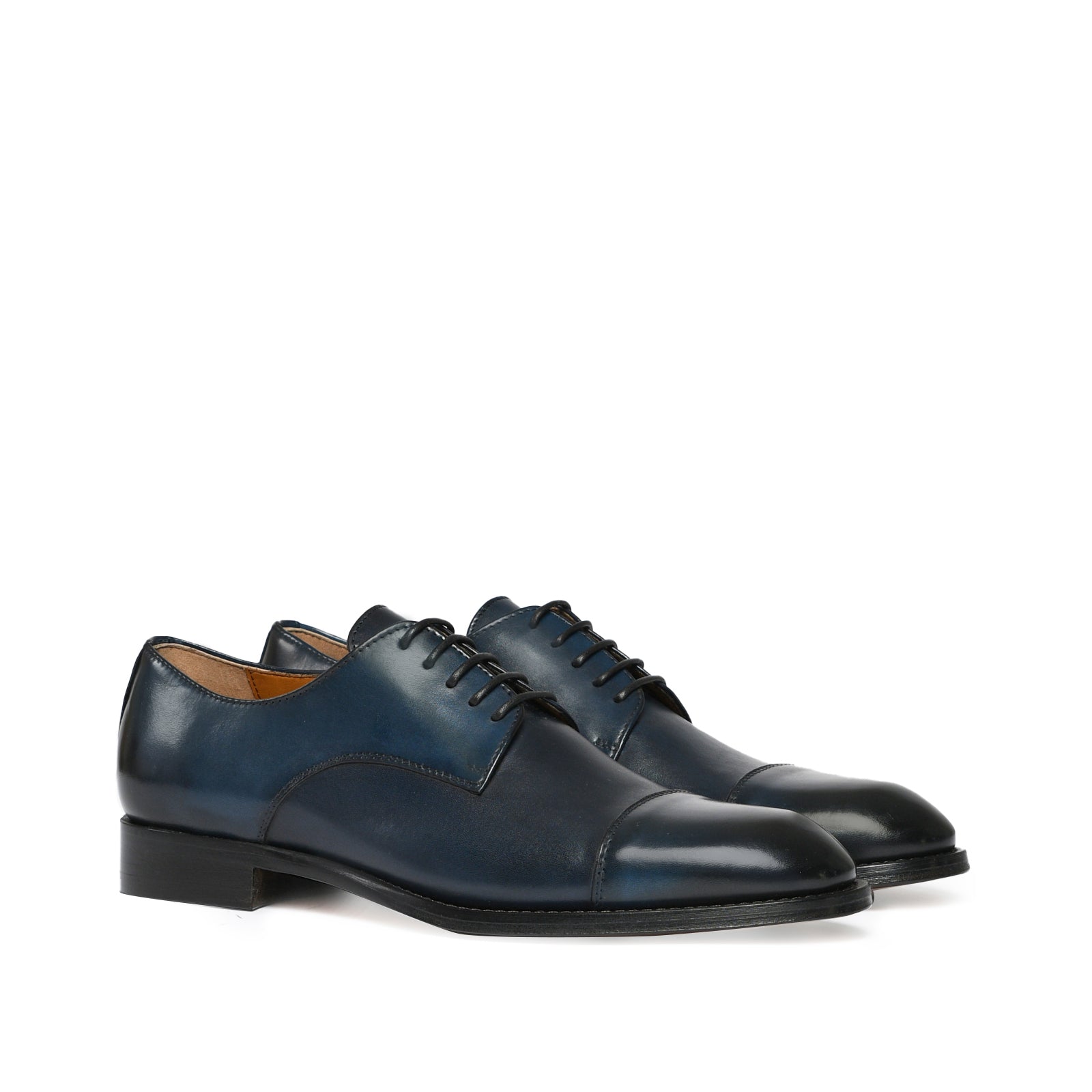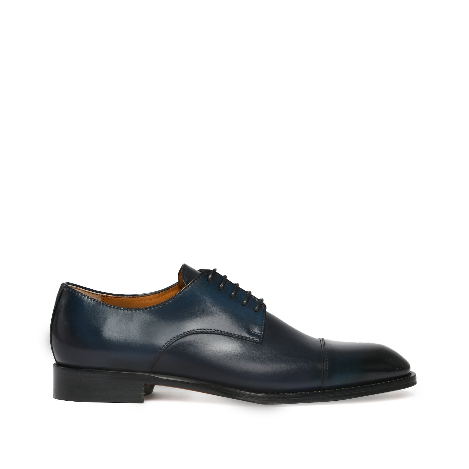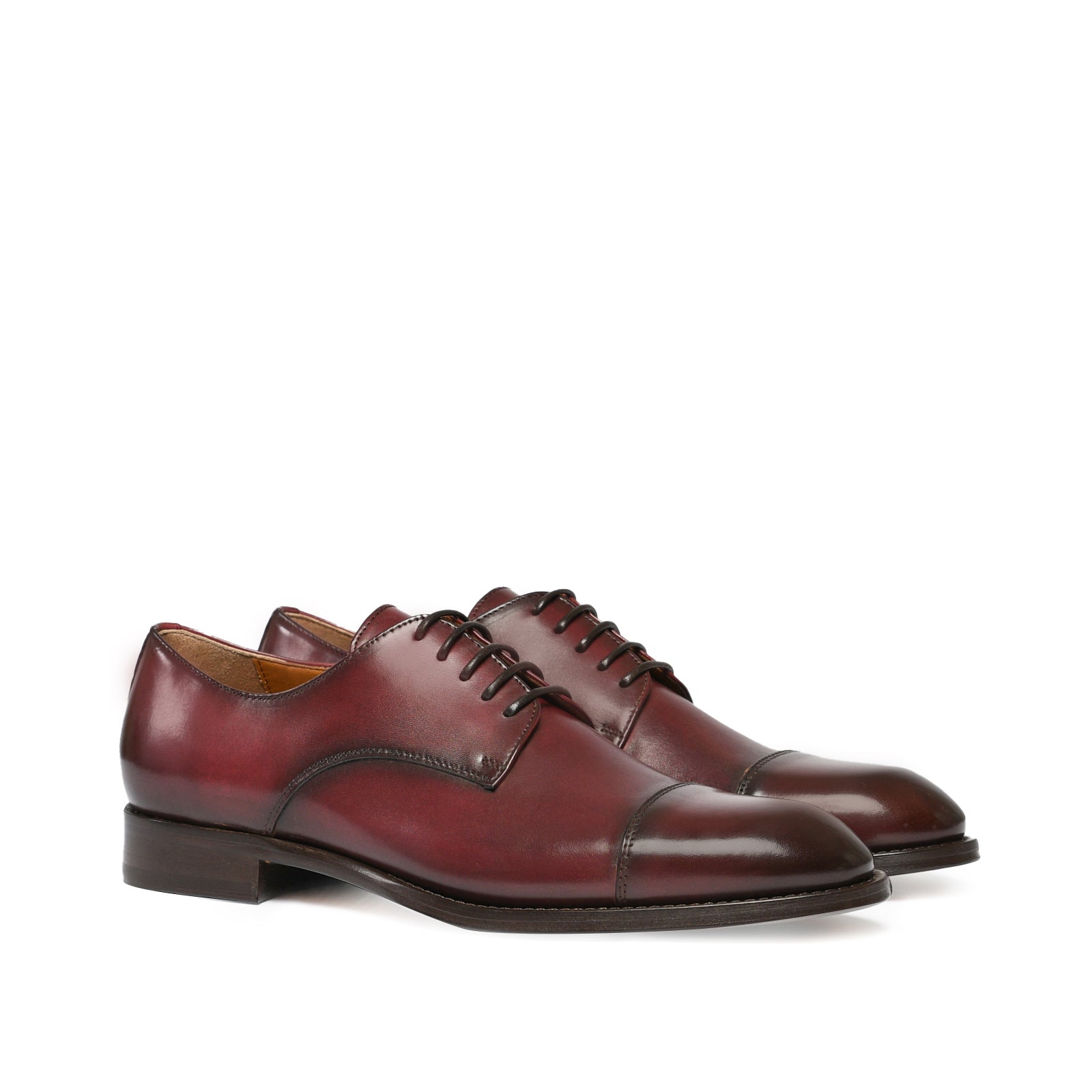 Il risultato finale di un processo meticoloso: una scarpa raffinata, dalla patina sfumata realizzata a mano, simbolo di qualità, tradizione e stile senza tempo.